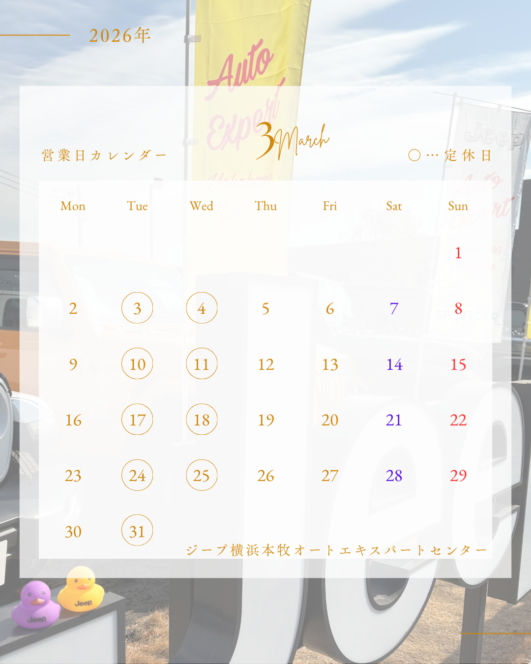 【Jeep横浜本牧】3月営業日のご案内🌼