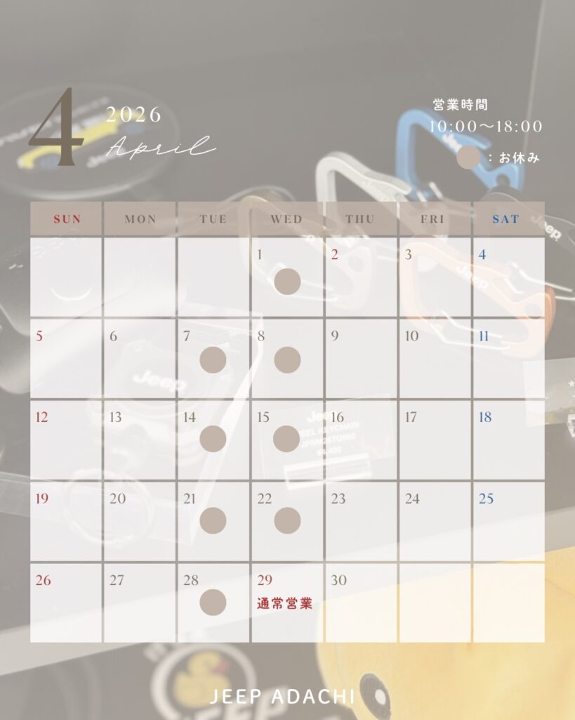 【ジープ・プジョー足立】4月営業日のお知らせ🌸
