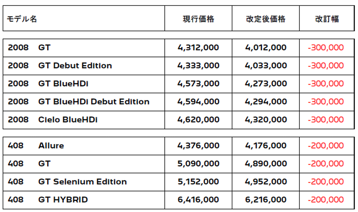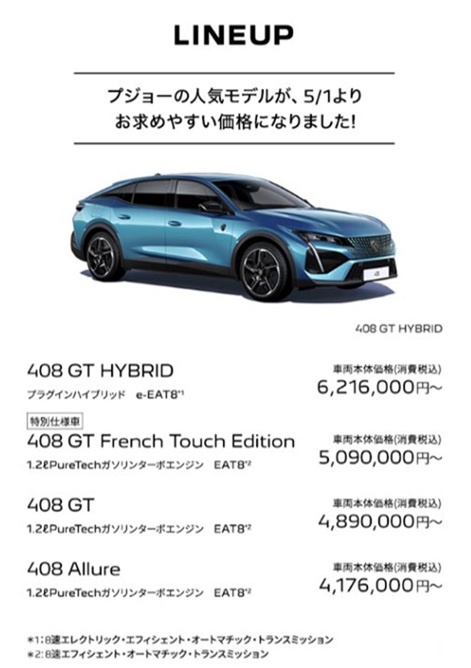 ・408 GT Hybrid ¥6,416,000 ⇒ ¥6,216,000
