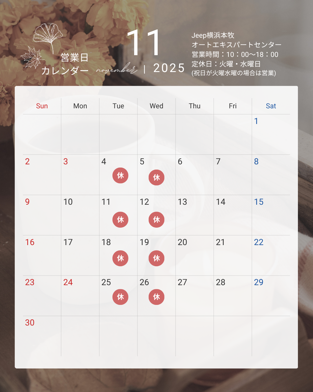 【11月】の営業日カレンダーをお知らせします📅✨