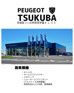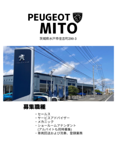 プジョー水戸でもセールススタッフやメカニックを募集しております。