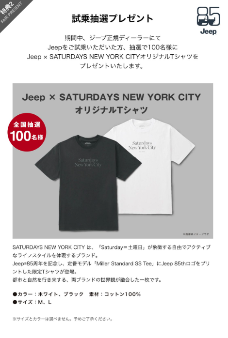 Jeep×SATURDAYS NEW YORK CITYオリジナルTシャツを