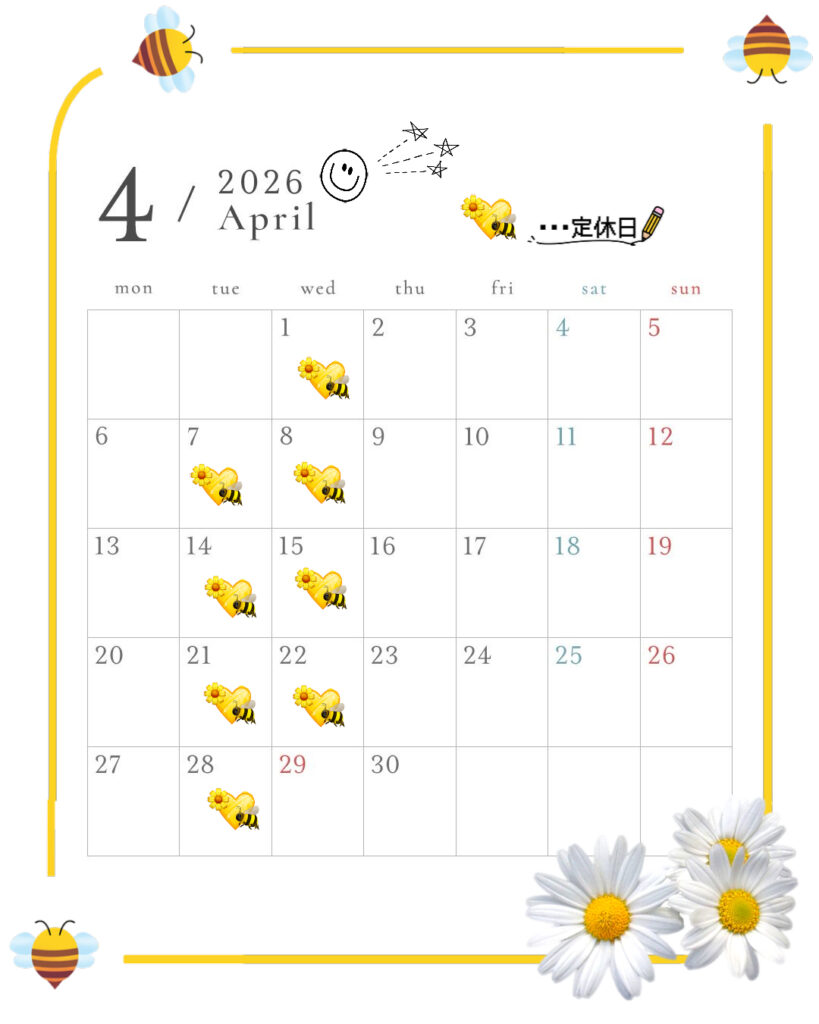 4月の定休日カレンダーです🍀✨