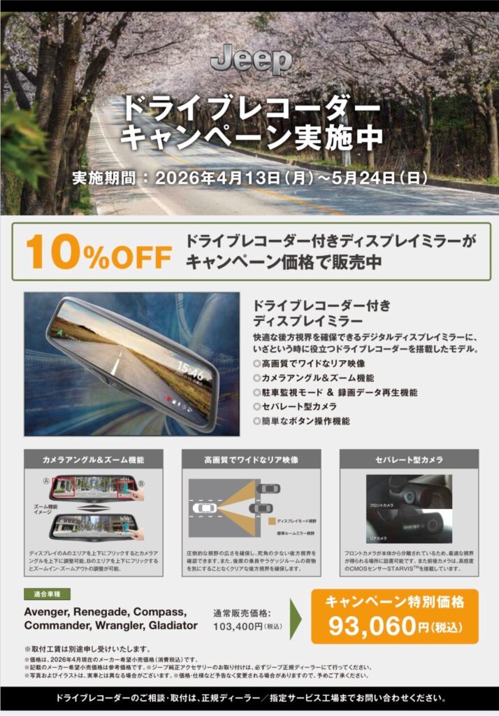 5月24日(日)まで、ドライブレコーダー付きディスプレイミラーがお得な価格でご購入いただけます。